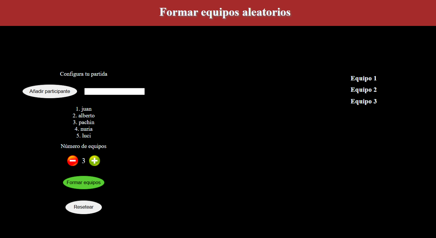 • Se pide un número mínimo de jugadores en función de los equipos para que siempre haya al menos un