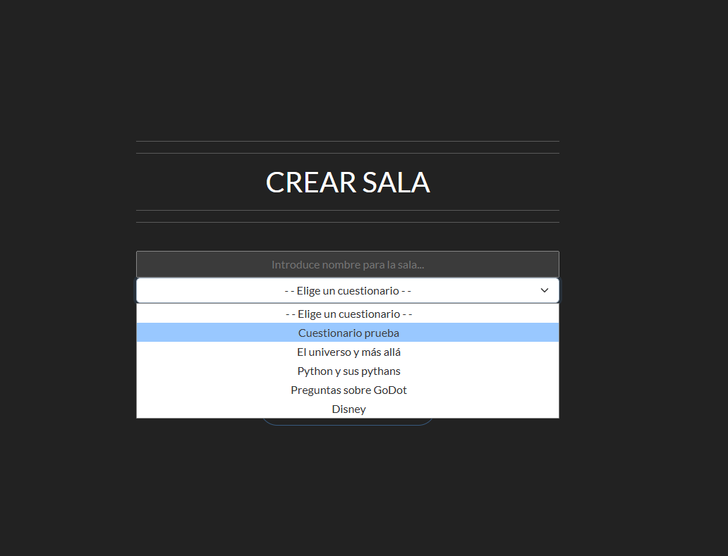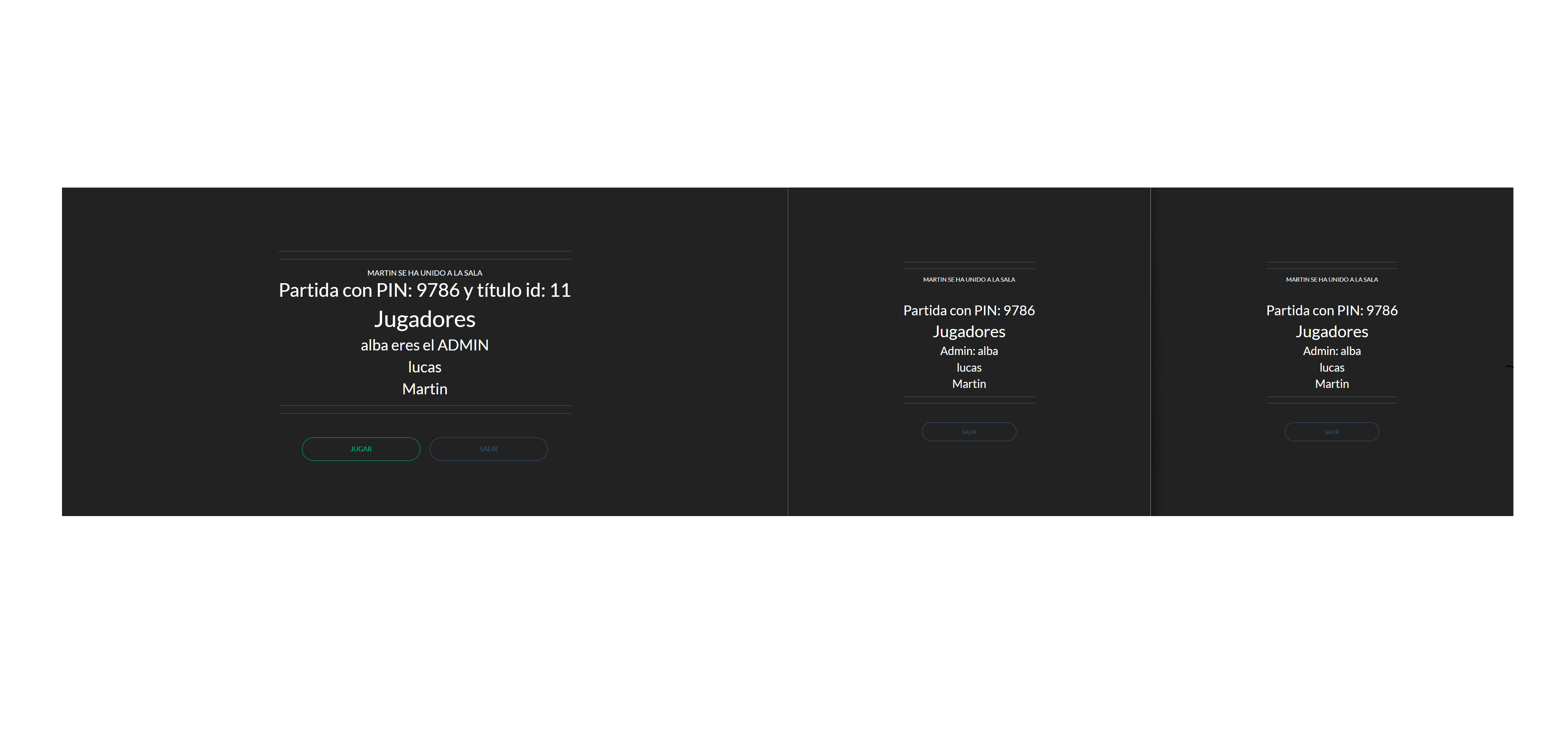 c- Front para los jugadores (creador de la partida, jugadores que se unen), la partida en sí y resultados finales. Todo en tiempo real.