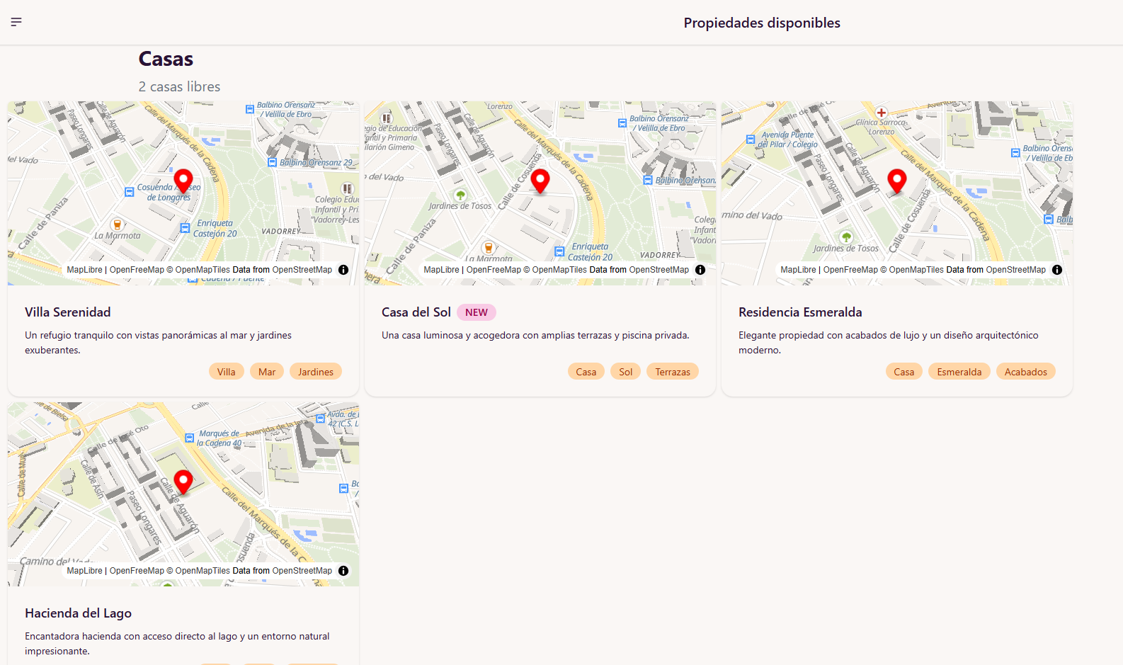 • Consiste en una web estilo Google maps, pero usando MapLibre (versión gratuíta de MapBox).